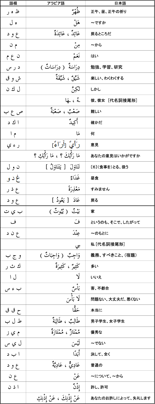 昼のあいさつ 語彙リスト