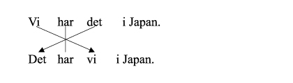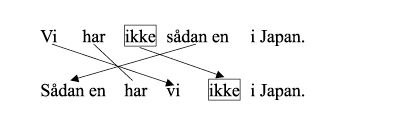 デンマーク語では,平叙文を主語以外の要素で始めることもできます.まずは,主語から始まる肯定平叙文を,目的語から始まる肯定平叙文に変えてみましょう.