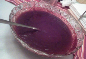 この粥料理には主食として食べられる穀物を煮たものだけでなく,デザートとして食べられる果物を煮たタイプのもあります.果物をどろどろになるまで煮て,それに砂糖を加えて冷やしたものに,生クリームあるいは牛乳をかけて食べます.