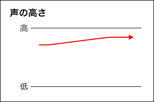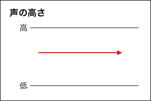 ここでは、maaを例に声調の練習をしてみましょう。(日本語のカナ表記「マー」) 声調が音の高低の変化であるといっても、それは相対的な高低であって、音楽のような絶対的な音程とは異なります。声の高い・低いは個人差がありますので、自分が出せる声の範囲内で高低をつけるようにしましょう。